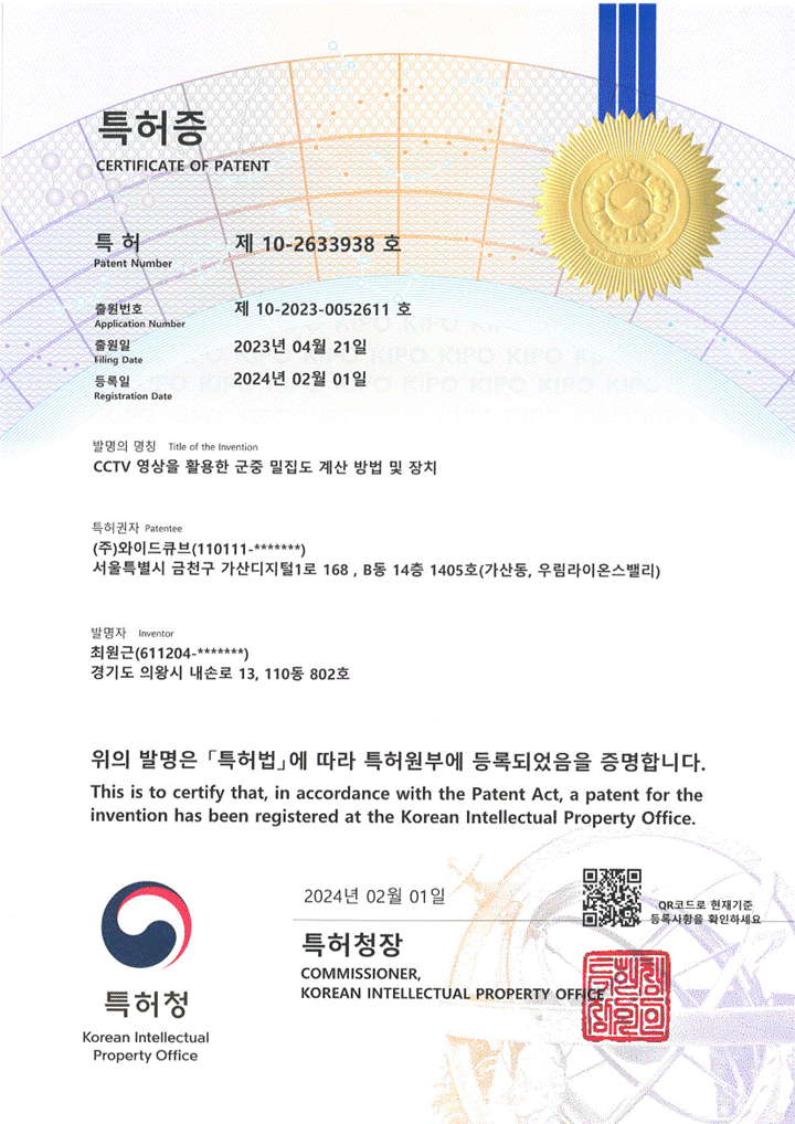ƯÇãÁõ(CCTV ¿µ»óÀ» Ȱ¿ëÇÑ ±ºÁß ¹ÐÁýµµ °è»ê ¹æ¹ý ¹× ÀåÄ¡) |